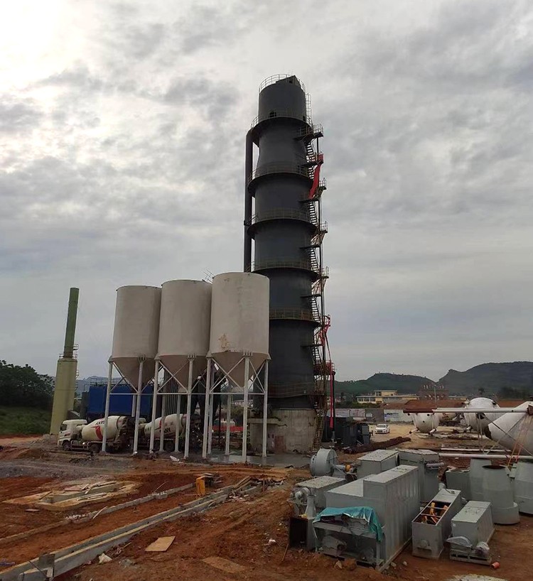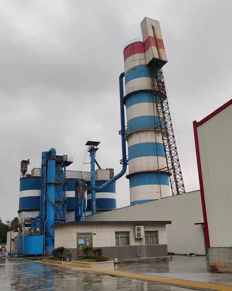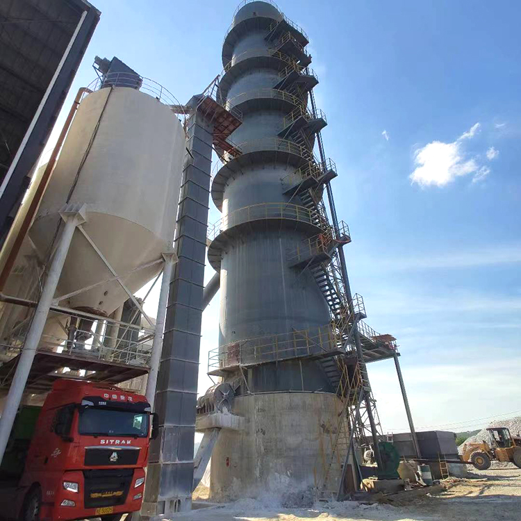 助燃空氣由羅茨風機從爐體下部吹入爐內,克服料粒阻力從下部上升至爐頂,在除塵引風機的吸引下,煙氣通過管道輸送到除塵器進行除塵。由于引風機的作用,使窯內料面上方形成微負壓區(-10Pa左右)。這個微負壓保證了爐內氣流順暢,非常有利于煅燒帶石灰石進行分解,引風機將全部煙氣引進除塵器凈化,而后從煙囪達標排放到大氣中。